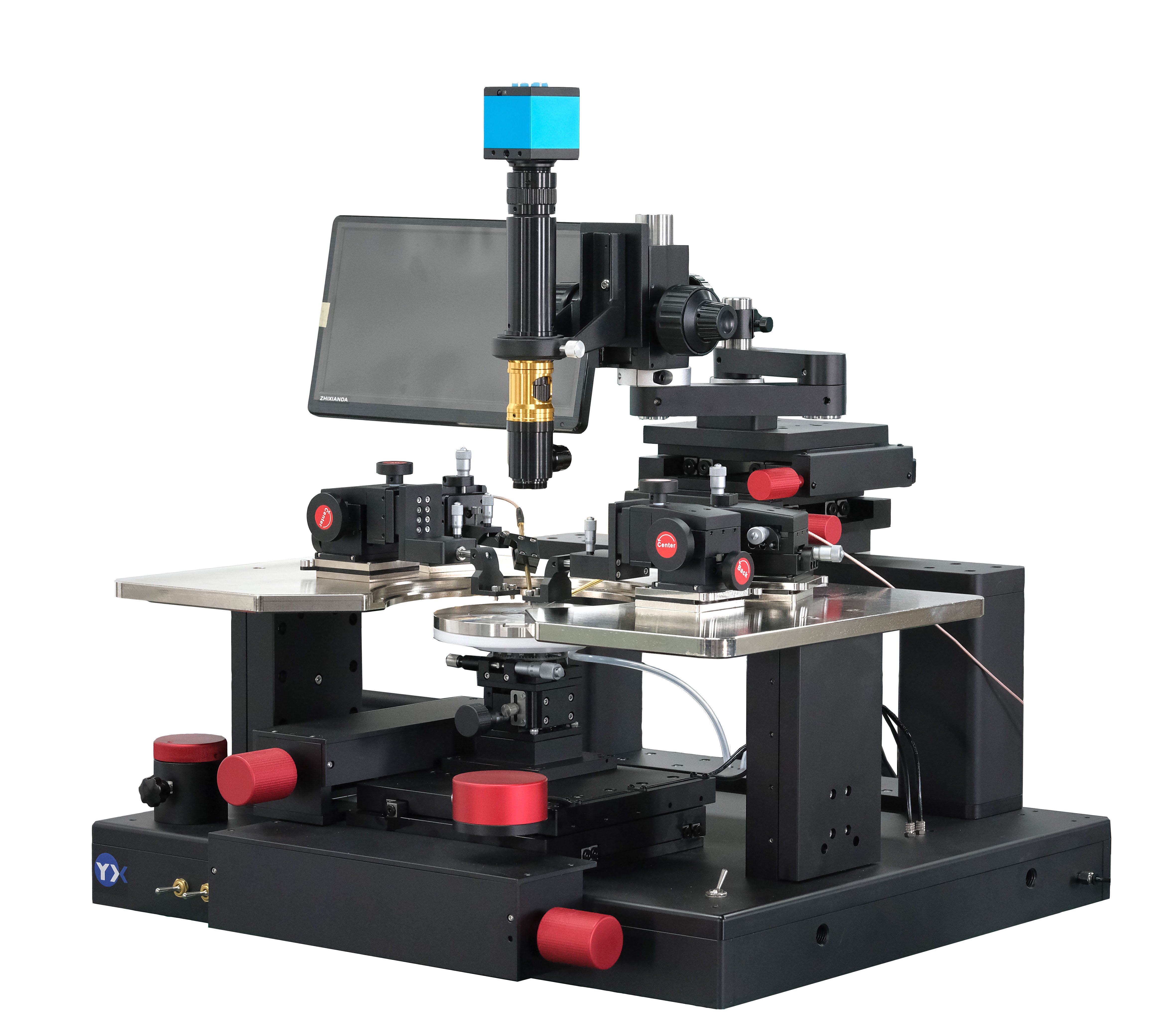 L系列探针台是我司一款增强型晶圆测试探针台,最大可完成12英寸晶圆的电学测试。此系列探针台采用高刚性显微镜龙门结构,显微镜可X-Y-Z方向进行精密位移调节。卡盘具备上下调节功能,可以使探针与样品快速分离,提高测试效率,在科研单位和半导体工厂都得到了广泛运用,配合对应的仪器仪表,可以完成集成电路/芯片/MEMS器件/PCB元器件/材料器件的IV/CV特性测试/管芯晶圆/LED/LCD能电池行业的测试。此系列探针台可以实现1μm以上的Pad电极测试。